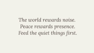 The world rewards noise. Peace rewards presence. A reminder to tend to what’s quiet before the world asks for a piece of you.